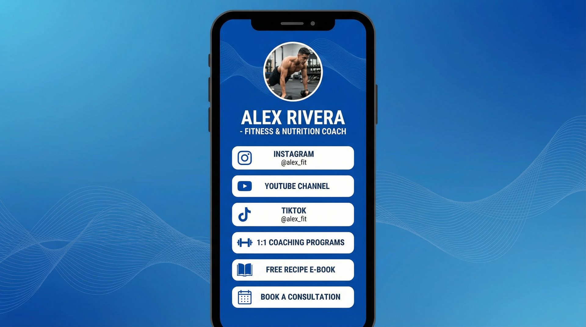 TrainingPro's link-in-bio builder lets you create a professional, mobile-optimized landing page showcasing your services. Include your lead capture form prominently, highlight key programs (1-on-1, group training, online coaching), link to client testimonials, and add booking links.
